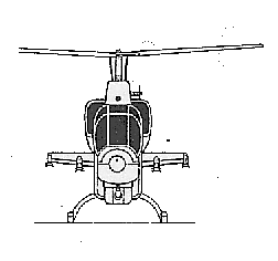 – en général une Minigun 7,62 mm à tubes multiples, un lanceur de grenades de 40 mm, tous deux dans une tourelle commandée à distance, ou un canon de 20 mm à six tubes ou de 30 mm à trois tubes, plus quatre pylônes pour charge de 76 fusées de 69,8 mm ou conteneurs Minigun ou canon 20 mm, ou (TOWCobra) huit engins TOW en tubes de lancement en tandem sur les deux pylônes extérieurs, les deux autres étant disponibles pour d’autres charges.