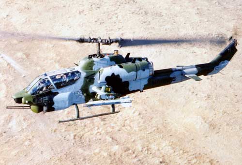– Army, équipée d’un moteur T53 de 1 100 cv, fut livrée en 1 124 exemplaires, y compris 8 unités pour la marine espagnole (attaque de navires) et 38 appareils d’entraînement pour fUS Marine Corps. LAH-1O, une version anti-blindés souvent appelée TO WCobra, transporte huit engins TOW ainsi que le système de visée approprié. LAH-IJ SeaCobra du Marine Corps et de l’Armée iranienne possède deux moteurs, le UAC Twin Pac de 1 800 cv, à deux reprises de force propulsives T400 entraînant un seul axe de transmissio