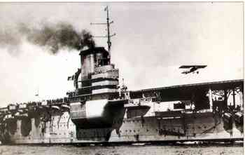 Le Béarn fut le premier porte-avions à entrer en service dans la marine française. A ce titre, il y favorisa le développement des techniques de l’aviation embarquée. le porte-avions Béarn trouve ses origines dans un cuirassé de la classe Normandie jamais achevé, dont la coque fut dotée d’un pont d’envol. Réalisé par les chantiers de la Méditerranée, à La Seyne, le bâtiment en question fut mis sur cale en avril 1914 et lancé en 1920. Mais sa construction se trouva différée, pour diverses raisons, jusqu’en 1923.L’ Amirauté française décida alors d’en faire un porte-avions, dont l’assemblage s’étendit entre août 1923 et mai 1927. Mouillé à la Martinique de 1927 à 1933, le Béarn servit dans la flotte de Méditerranée, participant à des missions au Maroc. Refondu en 1935, il fut affecté à l’escadre de l’Atlantique en 1936 et, trois ans plus tard, devint une base d’ dravions. Il servit au transport de l’or destiné à payer les avions acheté par la France aux États-Unis et au convoyage des mêmes appareils vers la France. Mouillé aux Antilles de 1940à 1942, il fut expédié aux États-Unis, où il demeura, de 1943 à 1944, afin d’y subir une importante refonte. Il opéra en Indochine en 1945-46 et fut condamné en 1967 puis vendu pour être démoli.