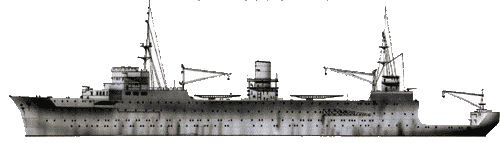 pas de pont d’envol mais 4 catapultes et 5 grue de levage de 12 t de capacité Protection : ceinture de 50 mm et blindage de pont de 36 mm