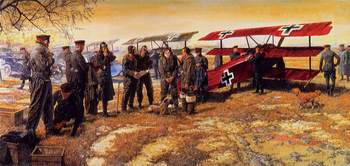 21 avril 1918. Le vent d’est bousculait des traînées brumeuses au-dessus du terrain. Les gens de Richthofen surveillaient les lignes ennemies dans leurs lunettes. Des pilotes attendaient, près de leur appareil, les mains dans les poches de la combinaison de vol. Les officiers jouaient avec le dogue de Richthofen.