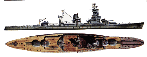 Protection cuirasse ceinture, 101-305 mm ; ponts, 89-178 mm ; tourelles, 355 mm Aviation 3 appareils, 1 catapulte