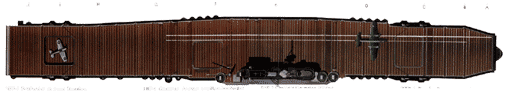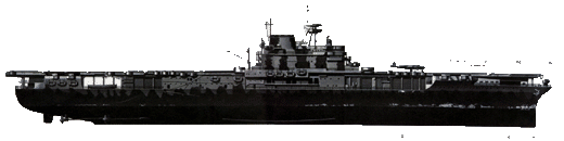 Sa carrière ne dura guère plus d’un an entre son admission au service et sa perte, mais le Hornet se couvrit de gloire. Il en était encore à sa croisière d’endurance à l’époque de Pearl Harbor, et c’est lui qui fut choisi pour lancerle fameux raid des bombardiers Mitchell sur Tokyo sous les ordres-du lieutenant colonel James Doolittle. Le Hornet est représenté ici avec le propre Mitchell B-25B de Doolittle sur les lignes blanches peintes comme guides pour les roues des B-25. Il coula lors d’une attaque aérienne en octobre 1942.